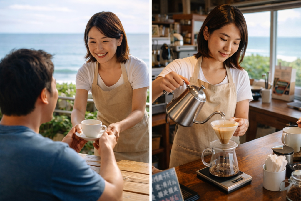 海風與咖啡的一天:小美的咖啡店日記